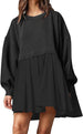 Our sweatshirt dress is designed with round neckline, drop shoulder, long puff sleeve, gathered cuffs, pleated bottom, flowy hem, patchwork details, solid color. Suitable for casual daily wear, lounge wear, party, club, street, dating, going out, vacation, holiday, weekend, or tennis, golf, workout, etc.